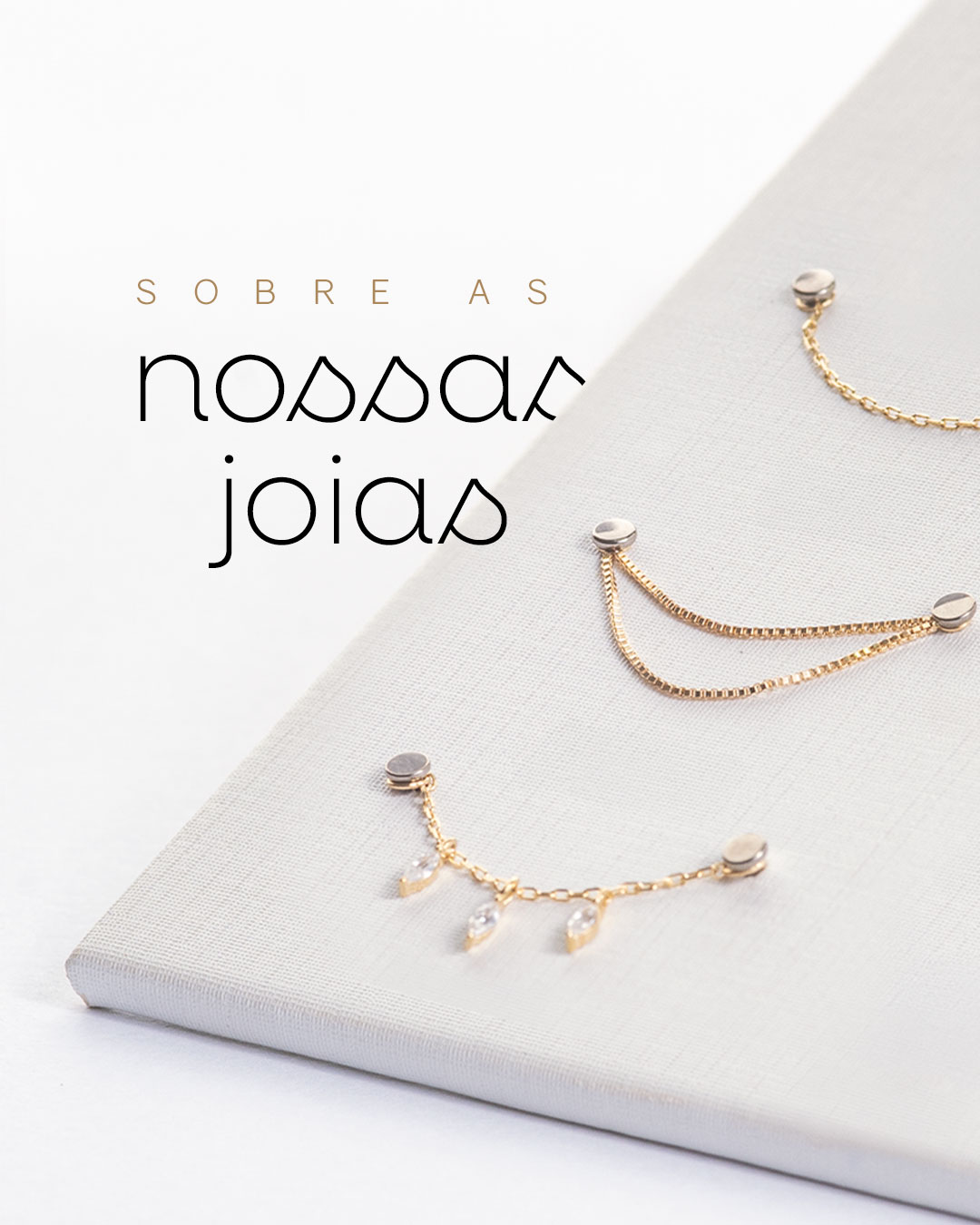 Possui três colorações mais conhecidas: o amarelo, o branco e o rosê. Trabalhamos com ouro 14k, composto por 58,5% de ouro puro, oferecendo excelente durabilidade e resistência a danos e manchas — ideal para joias utilizadas continuamente no corpo.