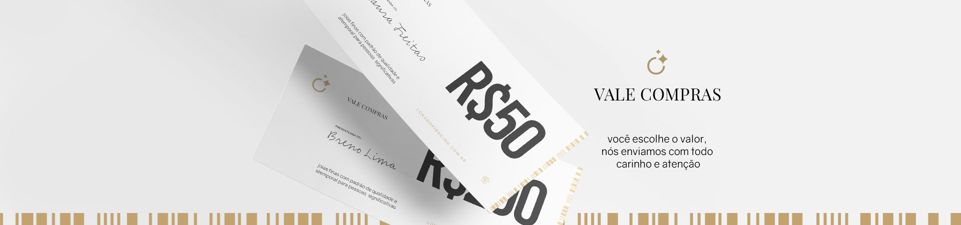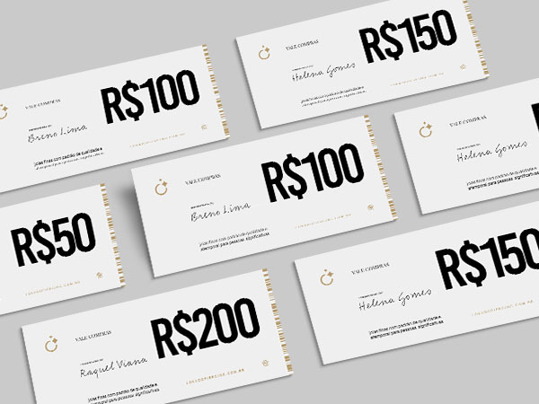 O vale poderá ser utilizado em compras na loja online, de acordo com o valor escolhido.